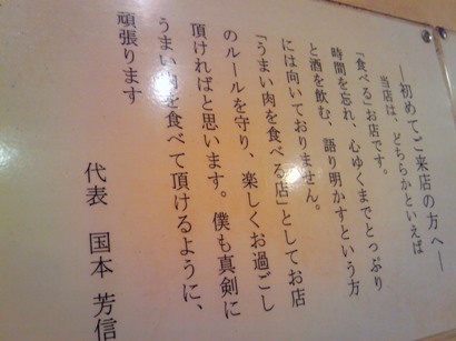 『当店はどちらかといえば「食べる」お店です』と言い切るあたり、かなりの男前さを感じさせる。上肩ロース、サーロイン、上ハラミなんか、特にうまかったのう。